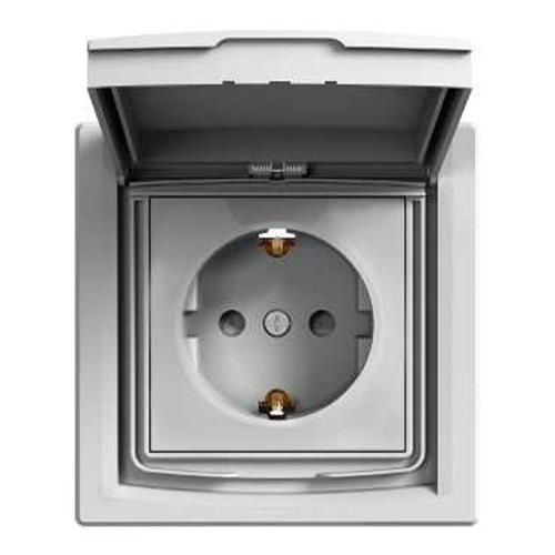 Розетка с заземлением, с крышкой и шторками IP44, Алюминий Asfora, EPH3100361