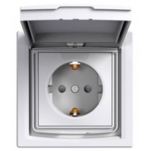 Розетка Schneider-Electric Asfora с крышкой IP44 заземлением белая