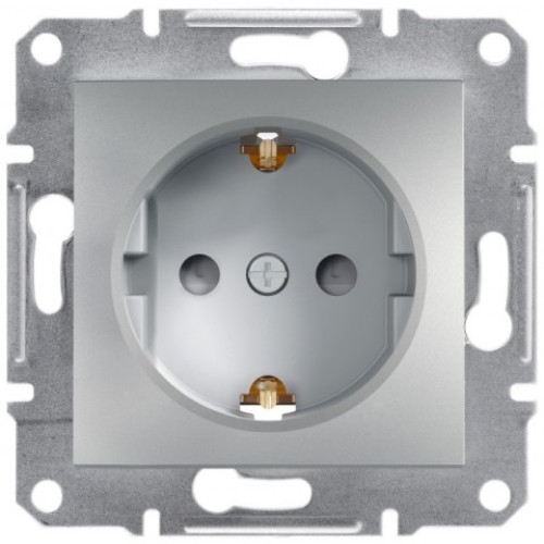 Розетка с заземлением, с защитными шторками Алюминий Asfora, EPH2900261