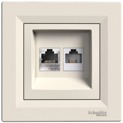 Розетка телефонная+компьютерная, двойная Кремовая, Asfora EPH4900123