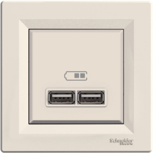 Розетка USB, 2 выхода 2.0, 5V-DC, макс 2.1A, Кремовая, Asfora EPH2700223