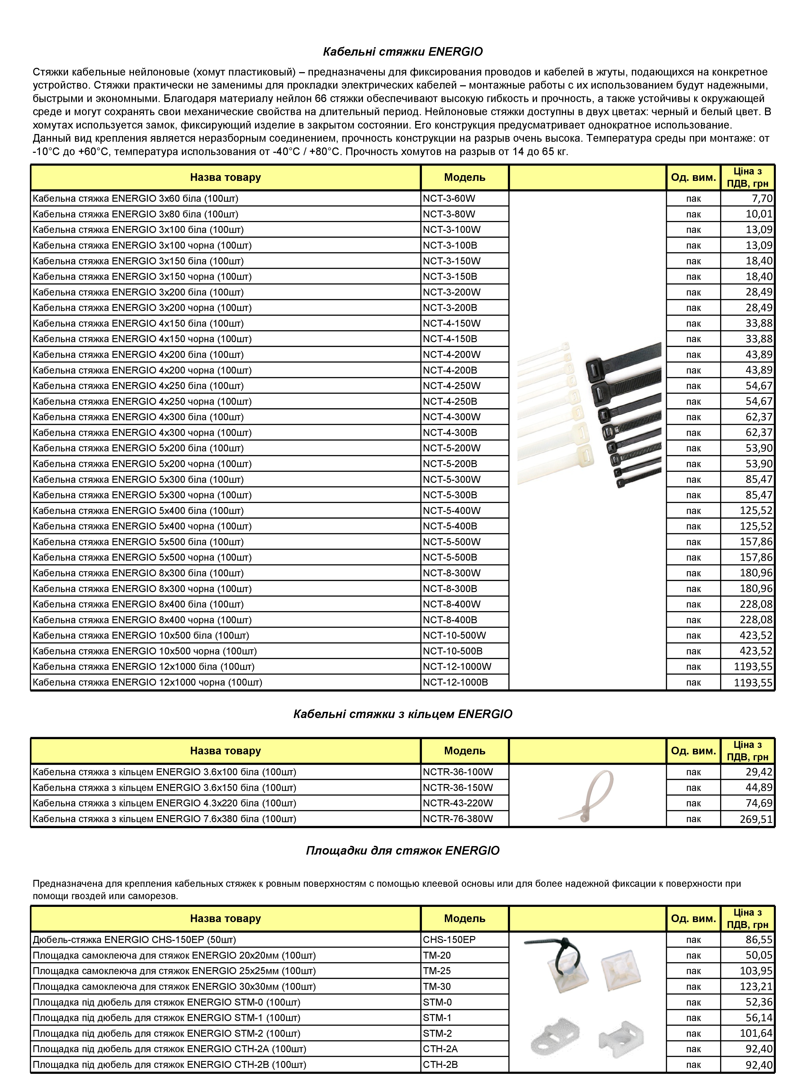 Стяжки кабельные, площадки для стяжек
