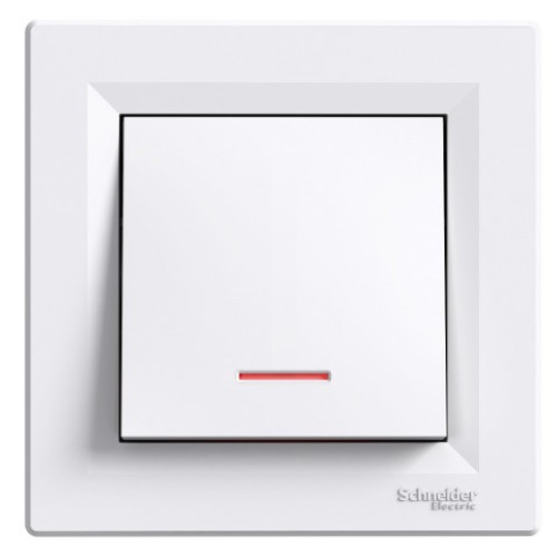 Выключатель одноклавишный проходной с подсветкой, Белый, Asfora EPH1500121
